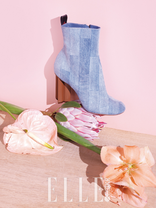 킹프로데아 꽃봉오리 위에 오른 빛바랜 데님 앵클부츠는 1백70만원대, Louis Vuitton.