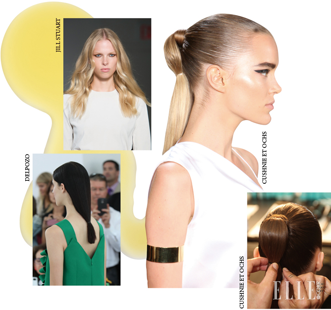 뻔한 포니테일에 지쳤다면 쿠신 잇 오취스로 눈을 돌려볼까? 클레오파트라를 연상시키는 파워풀한 슬릭 포니는 드레스업이 필요한 나이트 아웃이나 편안한 모던 스포티즘에 두루 어울려 보였다. “스프레이를 뿌려 타이트하게 빗은 모발을 두 개의 고무밴드로 고정시켰죠. 밴드 사이의 머리카락을 느슨하게 빼 볼륨을 부여했고요. 이집트의 풍뎅이 부적 같지 않나요?” 모로칸오일의 글로벌 크리에이티브 디렉터 안토니오 코랄 카렐로(Antonio Corral Calero)가 핀으로 두 번째 고무줄을 뒤통수에 고정하며 이야기했다.