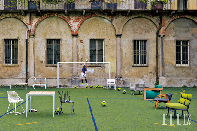 오래된 중정에 축구를 좋아하는 소년들을 위한 놀이터를 꾸몄다. 여기엔 새로운 디자인의 아웃도어 가구들이 총동원됐다. 자세히 뜯어보면 기하학적 가구들이 모여 어른에게도 꿈의 놀이터를 선사한다.