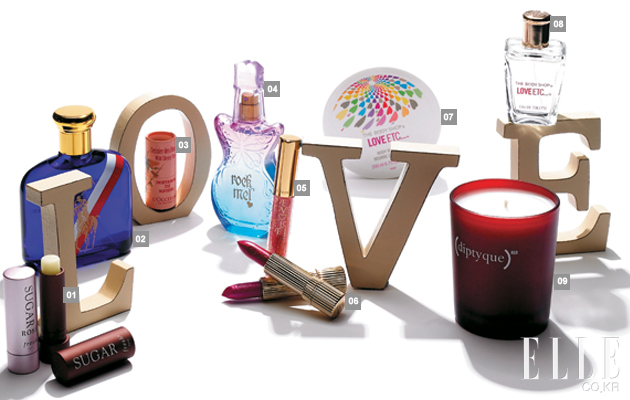 | 1 프레쉬 슈가 립 트리트먼트 듀오 세트. 7만8천원. 천연 슈가와 블랙 커런트 오일 성분이 연약한 입술을 보호. 여성용은 장밋빛 틴트 효과. 각각 4.3g. 2 랄프로렌 폴로 레드, 화이트 & 블루. 가격 미정. 스포츠맨의 페어 플레이 정신과 오마주를 표현한 향수, 밸런타인데이를 맞아 보틀 캡에 이니셜을 새겨주는 이벤트 진행. 75ml. 3 록시땅 와일드 체리 트리 스틱 솔리드 퍼퓸. 가격 미정. 와일드 체리 추출물 10%가 담긴 오드 투왈렛, 사용이 편리한 롤온 타입, 5ml. 4 안나 수이 락미 써머 오브 러브. 7만3천원. 화이트 피치와 프리지아의 여성스러움과 베르가모트의 프레시함이 경쾌한 조화를 이루는 플로럴 워터리 향수, 50ml. 5 에스티 로더 러브 유어 립글로스. 3만6천원. 은은하게 반짝이는 시어한 커버력. 끈적이지 않는 편안한 포뮬러. 2.7ml. 6 에스티 로더 러브 유어 립스 립스틱 기존의 시그너처 립스틱에 러브 로고 장식. 3.8g. 7 더바디샵 러브 이쎄터라 보디 크림. 2만8천원. 재스민, 바닐라, 머스크 크림의 사랑스러운 향. 8 더바디샵 러브 이쎄터라 오드 퍼퓸. 3만6천원. 오리엔탈 플로럴 향취, 30ml. 딥티크 레드 캔들. 9만5천원. 수익금을 아프리카의 에이즈 환자를 위해 사용하는 스페셜 에디션. 앰버와 허브, 과일 향의 조화. 190ml. |