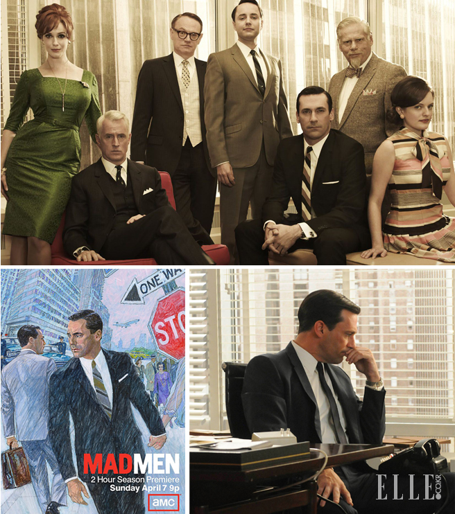 1960-70년대 미국 광고계를 배경으로 한 TV시리즈 <매드맨 Mad Men>. 에미상 작품상을 4년 연속 수상한 명실공히 최고 품질의 ‘미드’로, 품격 있는 연출과 쫀쫀한 각본은 말할 것도 없고, 등장 인물들의 복고풍 스타일을 감상하는 재미 또한 쏠쏠하다. 극 속에서 위스키와 담배를 달고 사는 광고쟁이들은 항상 번드르르한 양복 차림. 특히 주인공 돈 드레이퍼는 오만한 성격에 끊임없이 바람을 피우는 ‘나쁜남자’이건만, 홀로 사무실에 앉아 있는 그의 고독한 뒷모습에 빠져들지 않을 수 없다. 발목을 죄는 스키니한 수트를 입은 ‘남자애’들과는 차원이 다른, 어른 남자의 진한 향기라고 할까?