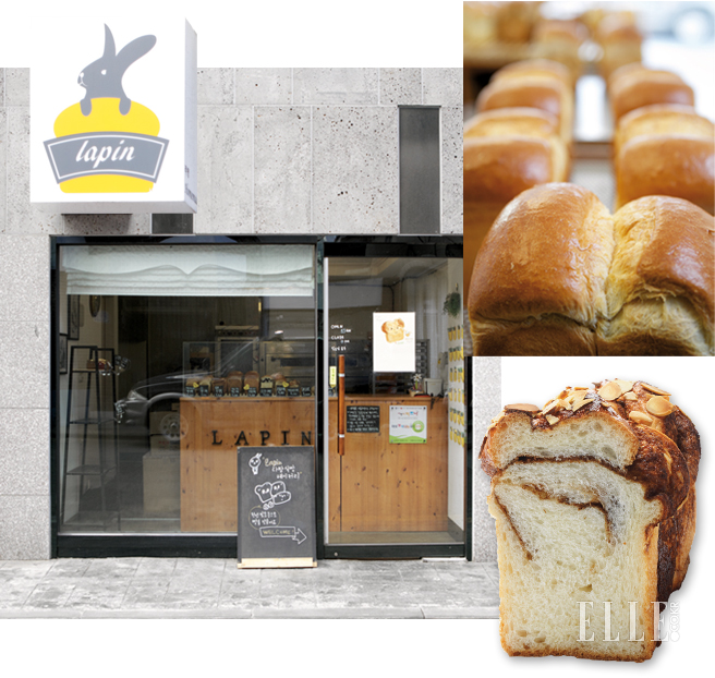 프랑스어로 ‘라팡(Lapin)’은 토끼를 의미한다. 앙증맞은 발음처럼 라팡의 식빵은 등 부분이 꼭 ‘궁디’ 팡팡 해 주고 싶은 토실토실한 토끼 엉덩이처럼 생겼다. 이곳에선 눈에 확 띄게 화려한 레서피로 빵을 굽진 않지만 손수 배양한 건포도 & 사과 액종의 천연 발효종을 반죽에 더해 다른 식빵에 비해 풍미와 소화력이 몇 배나 뛰어나다. 길을 걷다가 자연스럽게 눈에 띄어 들어오게 되는 아기자기한 카페 스타일의 인테리어는 전형적인 빵집 모습 같지 않아서 좋다. 남녀노소 할 것 없이 인기가 많은 건 밤 식빵, 아이들이 열광하는 건 초콜릿과 치즈로 속이 터질 것처럼 채워진 초코 크림 식빵.