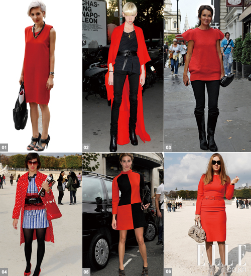 all kinds of red 1 강렬한 레드 컬러를 시도하기 겁난다면 심플한 아이템부터 시작해보는 것이 좋다. 룩에 밋밋함을 없애주기 위해선 포인트 액세서리가 필수. 고리 부분이 독특한 목걸이와 빈티지 시계 두 개를 함께 연출한 센스가 엿보인다. 2 뱀파이어의 모습이 떠오르는 레드 룩도 있다. 드라큘라의 롱 케이프처럼 오싹한 느낌의 레드 아우터를 연출한 스트리트 룩. 3 봉긋봉긋 볼륨이 돋보이는 레드 톱이 화려한 장식 없이도 풍성한 룩을 연출해준다. 손에 끼워서 연출하는 미니 백이 인상적이다. 4 한 개씩 보면 개성 넘치는 레드 아이템이지만 컬러를 너무 의식한 나머지 이것저것 한데로 모아 도를 넘은 것 같은 느낌을 지울 수 없다. 레이스와 블루 스트라이프 패턴까지 더해져 산만해 보이기도 한다. 5 레드에 블랙 컬러도 더했다. 두 컬러의 구조적인 배열이 모던함을 더해주는 룩. 6 빅토리아 베컴의 시그너처 룩이 떠오르는 보디컨셔스한 레드 드레스. 이 의상을 입고 음식을 많이 먹을 수는 없겠지만 스타일은 한껏 살렸으니 아쉬울 것 없겠다. |