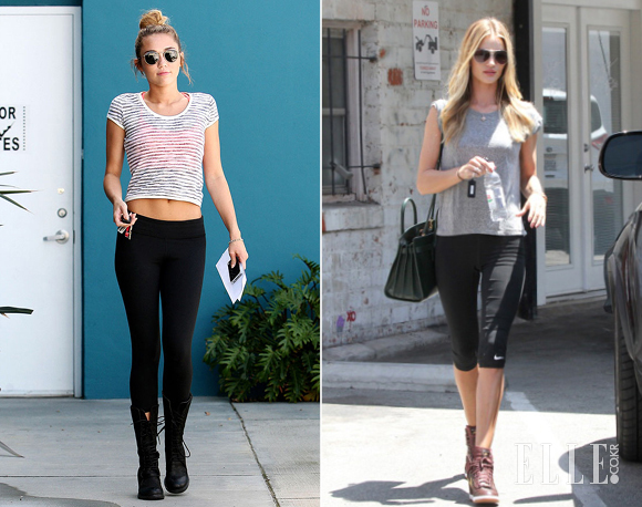 운동할 때는 당연히 편한 러닝화, 하지만 운동을 마치고 나온 로지 헌팅턴 휘틀리와 마일리 사이러스는 각각 하이톱 스니커즈와 블랙 레이스업 부츠를 신은 걸 볼 수 있다. 운동복을 넘어 ‘스포티즘 룩’으로 승화되는 순간!