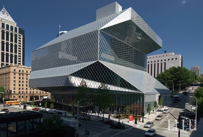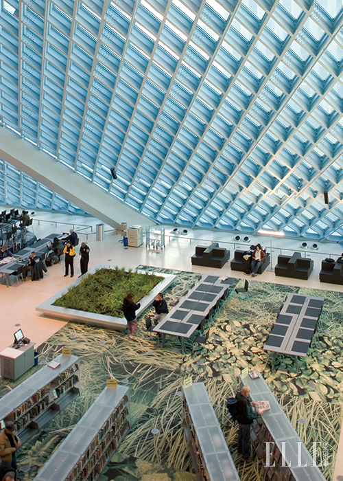1998년 미국 워싱턴 주 시애틀 시는 ‘모두를 위한 도서관’이라는 거대한 프로젝트를 벌였다. 스물아홉 개의 업체가 도서관 설계도를 제출한 가운데, 아방가르드한 11층 높이의 유리 건물을 구상한 렘 쿨하스가 시민 투표를 거쳐 건축가로 낙점됐다. 강철 구조에 유리로 뒤덮인 건물은 꼬마가 불규칙하게 쌓은 레고처럼 희한하게 붙은 단면들로 다면체를 이루고 있다. 시애틀의 ‘스페이스 니들’을 위협할 만큼 새로운 랜드마크가 됐다. 내부의 백미는 높이가 15m에 이르고 가운데를 텅 비운 ‘리빙 룸’이다. 도서관에 웬 리빙 룸이냐 하겠지만 이곳은 소설 섹션의 책들을 놓아두고 소파에서 쉬거나 인터넷을 즐기거나 자기 집 거실처럼 편안한 상태로 책을 접할 수 있다. 이 도서관이 책과 책 읽는 사람을 대하는 태도를 고스란히 보여주는 풍경이 아닐 수 없다. 6층부터 9층까지 4개 층에 걸쳐 연결된 회전형 서고도 장애인과 어린이들이 편하게 이용할 수 있어 실용까지 생각한 디자인 귀재들의 빛나는 결과물이라 할 만하다.