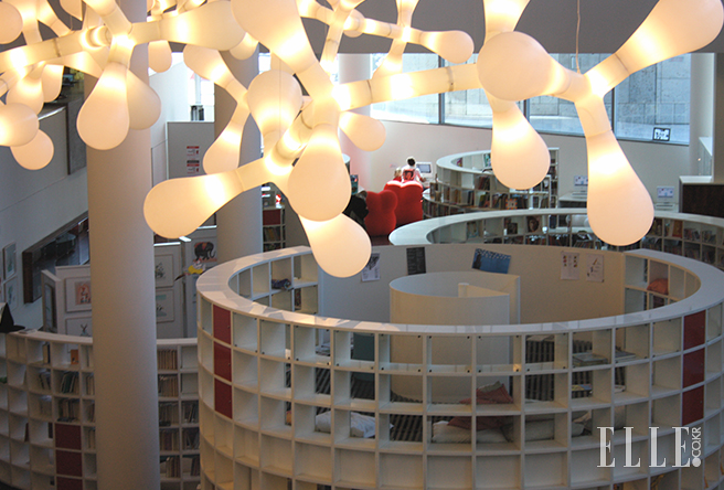 북유럽 스타일보다 실험적이면서 모던한 네덜란드 디자인의 정수를 보고 싶다면, 디자인 박람회에 갈 게 아니라 이 도서관에 가봐야 한다. 1919년 문을 연 이후 2007년에 암스테르담 중앙역 근처의 10층짜리 신축 건물로 이사온 암스테르담 공공 도서관은 네덜란드 건축가 조 코넌(Jo Coenen)의 작품이다. 창밖의 운하가 잘 보이도록 디자인한 유리 건물엔 전면으로 햇빛이 쏟아져 들어온다. 실내에는 디자인 가구가 가득하고, 조명이나 의자는 브랜드 쇼룸이 연상될 만큼 컨셉트가 확실하다. 어른 키를 넘지 않는 낮은 서가, 여기저기 가장 편한 자세로 ‘널브러질’ 수 있는 휴식 공간, 카페처럼 꾸민 식음료 공간, 어디 하나 경직된 느낌이 없다. 그 때문일까 도서관 내부는 쥐 죽은 듯 고요하지 않고 재잘거리는 사람들의 소리가 경쾌하게 울려 퍼진다. 층마다 다른 컬러로 장서와 자료를 구분했는데, 기절할 정도로 많은 양의 음악 자료는 보물에 가깝다.