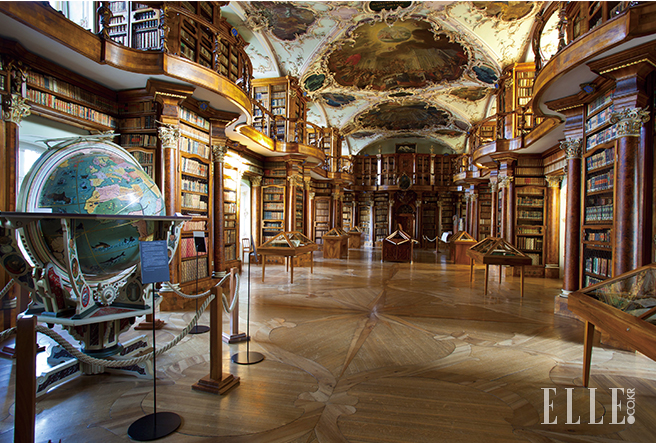 스위스에서 가장 오래된 도서관, 8세기부터 15세기 사이에 쓰여진 필사본 2100권을 소장하고 있다는 사실이 역사적으로 중요하기도 하지만 이 도서관의 백미는 압도적인 비주얼이다. 수많은 도서관 사진을 추리는 과정에서 감흥이 떨어질 때즘 이곳 사진을 보자마자 제아무리 좋은 카메라로 찍은 멋진 사진이라도 두 눈으로 직접 보고 싶었다. ‘죽기 전에 가봐야 할’ 같은 문구나 ‘버킷 리스트’ 같은 용어는 지루할 대로 지루해졌지만, 이곳이라면 그런 수식어라도 붙여야 속 시원하겠다. 중세에는 수도원이 학문의 중심지 역할을 했다. 수도원장이 소장한 책들이나 수사들이 읽거나 필사하던 책이 많이 모이면 그것이 그대로 도서관이 되었다. 그런 의미에서 장크트갈렌 수도원의 도서관 홀은 학자들 사이에서도 가장 뛰어나고 정교한 바로크 건축물로 꼽히며 유네스코 세계문화유산으로 지정돼 보호받고 있다.