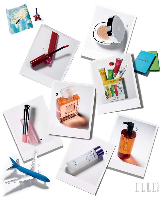 4 셀 에센스, 6만원, 헤라. 지친 피부의 컨디션 회복을 돕고 생기를 되찾아주는 워터 에센스. 장시간 비행으로 건조해진 피부를 달래는 용도로 사용해도 좋다. 전지현의 ‘하루 충전 에센스’라 불리며 중국과 동남아시아 관광객들에게 인기몰이 중이다.