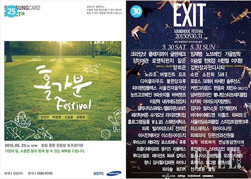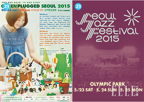 그린 플러그드 서울 2015 꿀 연휴를 위한 최고의 선물이 될 그린 플러그드 서울 2015. YB, 다이나믹 듀오, 뜨거운 감자, 윤하, 김예림, 시나위, 에피톤 프로젝트, 국카스텐 등 젊음의 열정을 자극하는 다양한 뮤지션이 대기 중이다. 5월 23일~24일, 서울 난지한강공원.
