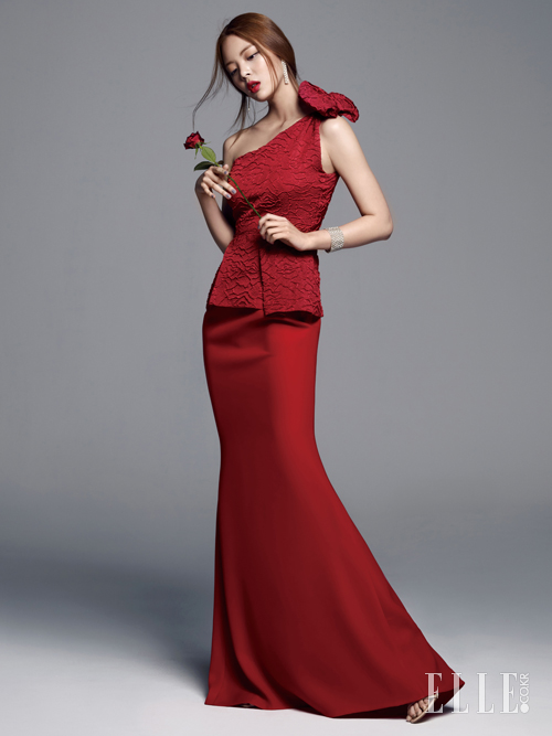 러블 장식의 슬릿 드레스는 1백30만원대, 스톤 장식의 뱅글은 27만원대, 링은 17만원대, 골드 스트랩 샌들은 66만원대, 모두 CH Carolina Herrera.