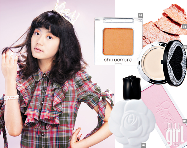 1 천연 추출물이 아이케어를 효과를 전해주는 프레스드 아이섀도 N P200호. 2.1g. 2만5천원. 슈에무라. 2 은은한 펄감이 입체적이고 매력적인 눈매을 연출하는 투 아이즈 섀도 31호. 6g. 1만2천원. 바닐라 코. 3 밀착력과 커버력을 겸비한 김원희 주얼리 파우더 팩트 SPF25 PA++ 21호. 2만3천원. 김미 쇼. 4 실크처럼 매끈하고 투명한 피부를 연출하는 프로텍티브 플루이드 파운데이션 L SPF20++ P06호. 30ml. 가격 미정. 안나 수이. 5 땀과 피지에도 흐려지지 않고 밀착력이 좋은 러블리 믹스 블러셔 PK101호. 4.5g. 4천5백원. 더페이스샵. |