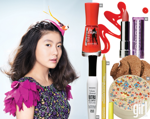 1 두 배로 풍부해진 비닐 포뮬러와 글로스 폴리쉬 기능을 하는 소 라크 울트라 샤인 33, 34호. 각각 10ml. 1만5천원. 부르조아. 2 리치한 포뮬러와 라이트한 텍스처로 이루어진 스위트 키스 샤인 59, 73호. 각각 3g. 2만8천원. 부르조아. 3 볼륨 콤플렉스 포뮬러가 한번의 브러싱만으로 세팅한 듯 완벽한 속눈썹을 연출하는 볼륨 글래머 글라무르 울트라 케어 11호. 12ml. 2만9천원. 부르조아. 4 천연 왁스가 함유되어 부드럽고 한 번의 터치만으로도 선명하게 발색되는 르갸르 에페 듀오크롬 펜슬63호. 1.17g. 1만7천원. 부르조아. 5 오븐 베이크 형식으로 만들어져 가루날림이 적은 고밀도 입자로 이루어진 아이섀도 따박 블롱드, 시트롱 지브레. 각각 1.5g. 2만원. 부르조아. |