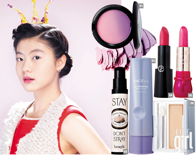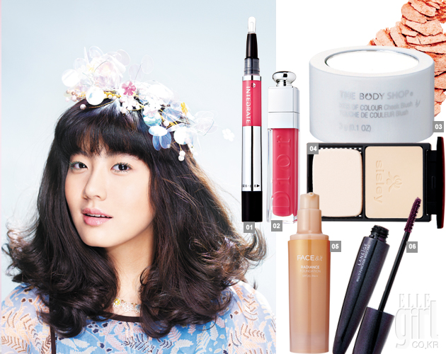 1 색깔을 자유롭게 섞어서 원하는 느낌으로 연출할 수 있는 블러쉬 옴브레 아자리아 블러섬. 9g. 4만원. 맥. 2 아이섀도와 컨실러의 지속력을 높여주는 아이 프라이머, 스테이 돈 스트레이. 3g. 3만원. 베네피트. 3 피부 보호, 쉬머링 베이스, 자외선 차단을 동시에 하는 페이스 앤 잇 쉬머링 BB 크림 SPF20 PA+. 40ml. 1만9백원. 더페이스샵. 4 진하고 부드러운 핑크 셰이드 시그니처 립스틱 루즈 아르마니 509호. 4g. 3만9천원. 조르지오 아르마니. 5 크리미하고 부드러운 색감을 자랑하는 VIP girl 디어달링 립스 PK009호. 4.3g. 7천원. 에뛰드 하우스. 6 미세하고 풍부한 색소 입자가 함유된 컬러 써지 아이섀도 소프트 쉬머 209호. 2.2g. 2만4천원. 크리니크. |