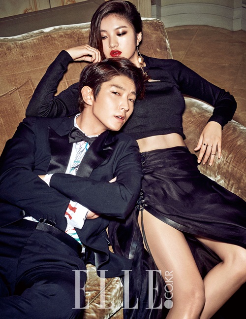이준기가 입은 네이비 컬러 수트와 패턴 셔츠는 모두 Dior Homme. 블랙 보타이는 Viktor & Rolf by Koon. 이하은이 입은 블랙 크롭트 톱과 드레시한 스커트는 모두 Ralph Lauren Collection. 레이어드 링은 모두 Club Monaco. 드롭 이어링은 Mzuu.