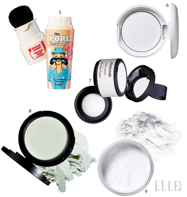 5 더 포어페셔널 에이전트 제로 샤인, 4만5천원, 베네피트. 뚜껑에 파우더를 덜어낸 다음 내장된 브러시로 번들거리는 부분에 맷돌 돌리듯 가볍게 쓱쓱 돌리며 쓸어줄 것. 모공과 피부의 잔주름을 거짓말처럼 메워 매끈하게 마무리된다.