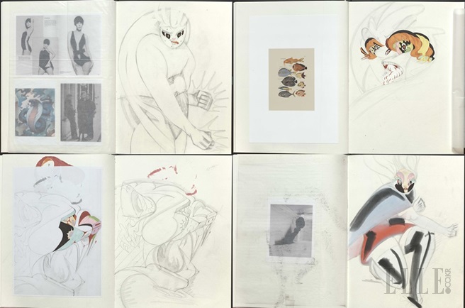 2015 F/W 컬렉션의 영감이 된 스케치와 사진들이 담긴 아이디어 북.