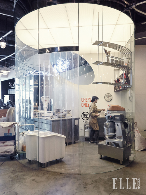 혀를 유혹하는 디저트가 가득한 쇼케이스, 파티시에의 손동작부터 발걸음까지 훤히 ‘오픈’된 키친, 시선을 잡아 끄는 현란한 인테리어, 들어서자마자 절로 카메라를 켜게 된다. ‘실험실’이라는 이름에서 보여지 듯 이곳의 디저트는 꽤 실험적(?)이다. 천연 바나나 크림을 짜서 먹는 ‘마마스브라우니’처럼 클래식한 디저트를 참신하게 재해석한 메뉴들을 선보인다. 원형 오픈 키친은 말 그대로 사방이 개방돼 있다. 파티시에가 도우를 반죽하거나, 밀가루를 개량하는 장면이 눈앞에서 펼쳐져 오가는 사람들의 시선이 자연스레 주방으로 꽂힌다. ‘내 입’으로 들어가는 브라우니가 탄생하는 과정을 직접 볼 수 있어서인지 안심하고 먹을 수 있겠다는 확신도 든다. 디저트의 신세계라고 했지만, 인테리어의 신세계이기도 하다.