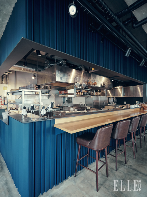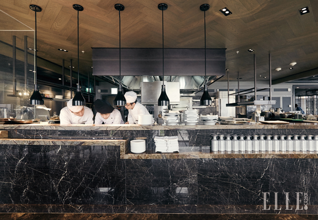한국에 스테이크 시대가 오고 있다. 뉴욕의 3대 스테이크 하우스 중 하나로 꼽히는 BLT 스테이크가 지난해 홍콩에 이어 세계에서 두 번째로 JW 메리어트 호텔 동대문에 터를 잡았다. 입구에서 들어가 오른쪽으로 펼쳐지는 공간이 키친인데, 홀에서 상당 부분을 차지할 정도로 규모가 크다. 게다가 키친도 통로 중간에 있는 오픈형이라 셰프들의 상세한 움직임까지도 직접 눈에 담을 수 있다. 키친의 전반적인 컬러는 블랙이다. 블랙 대리석으로 기둥을 세우고, 까만 실링 조명을 달았다. 여기에 접시, 보틀, 커트러리 등 테이블웨어를 데커레이션 요소로 활용해 모던하고 고급스러운 주방을 완성했다. 호텔과 스테이크 하우스의 조화가 자칫 올드해 보일 수 있다는 생각은 섣부른 선입견이었다.