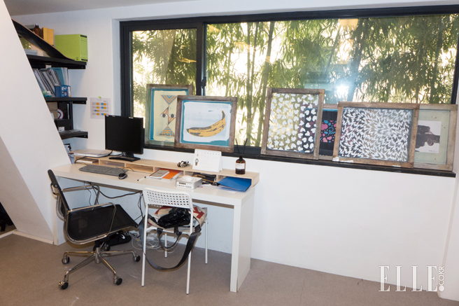 기둥처럼 생긴 구조물 뒤편을 책장처럼 변신시켰다. 각 직원 자리마다 따로 서랍장을 두지 않는 대신 작은 진열대처럼 예쁜 것들을 올려두었다.