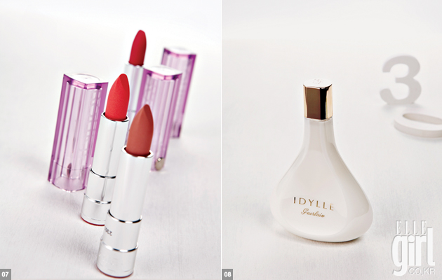 확 달라진 패키지가 눈길을 사로잡았던 제품. 또 바르는 순간 텍스처 속에 들어있는 시머가 반짝이는 효과를 주어 윤기와 볼륨감을 더해주었다. 보습 성분이 들어있어서 그런지 장시간 바르고 있어도 건조한 느낌이 들지 않았고 발색도 오래가는 편. 다만 눈으로 봤던 컬러와 실제로 발색된 컬러에 차이가 있으니 반드시 본인의 입술에 테스트를 해본 후 색깔을 선택해야 후회가 없을 듯하다. 3g. 2만8천원. SU YOUNG