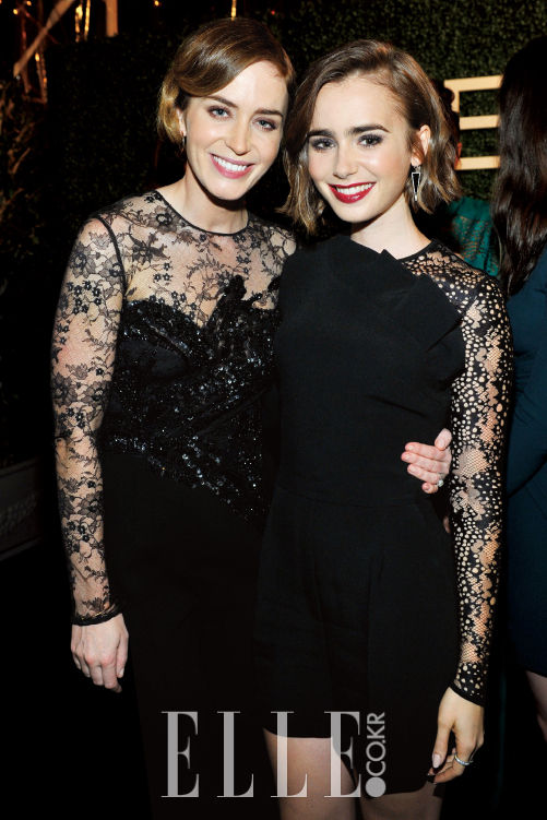 고전, 액션, 공포, 로맨스 등 모든 장르를 소화하는 연기파 배우 에밀리 블런트와 팝 가수 필 콜린스의 딸이자 배우인 릴리 콜린스. 짙은 눈썹이 닮은 두 사람이 엘리 사브의 디너 파티에 블랙 시스루 룩으로 트윈룩을 연출하며 우정을 뽐냈다.
