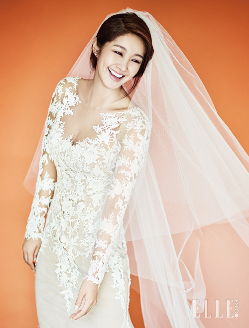 김빈우의 시스루 레이스 드레스는 Zuhair Murad by My Daughter’s Wedding. 베일과 이어링은 My Daughter’s Wedding.