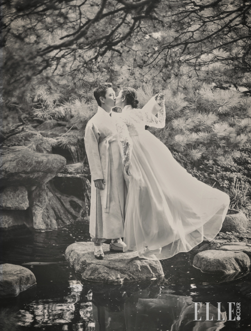 한복은 Kumdanje Hanbok. 쇼트 베일은 My Daughter’s Wedding. 화관과 꽃은 Allexc Flower.