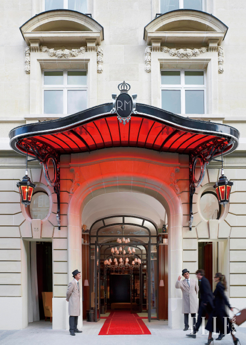샹젤리제 거리와 포보 생토노레 거리 중간쯤 있어 쇼핑이 용이한 로얄 몽소 래플스 파리 호텔의 입구.