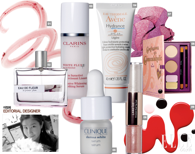 2 겐조 오드 플뢰르 플럼 여자라면 한 번쯤 꿈꾸는 봄날의 로맨스를 닮은 은은하고 달콤한 플로럴 향이다. 처음엔 향기가 강한 듯하지만 시간이 지날수록 잔잔해져 부드러운 향이 코끝에서 아련하게 남는다. 말괄량이 소녀도 여성스럽게 만들어줄 그런 우아한 향이다. 다가오는 봄을 준비하기엔 딱인 듯! 50ml 7만8천원.