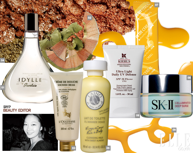1 겔랑 이딜 샤워 젤 매일 아낌없이 사용하는 데일리 샤워 젤로는 감질 맛나는 아이템. 아주 특별한 날 색다른 기분을 느끼기 좋은 제품이다. 고급스러운 향과 풍부한 거품이 참 좋다. 6만1천원.
