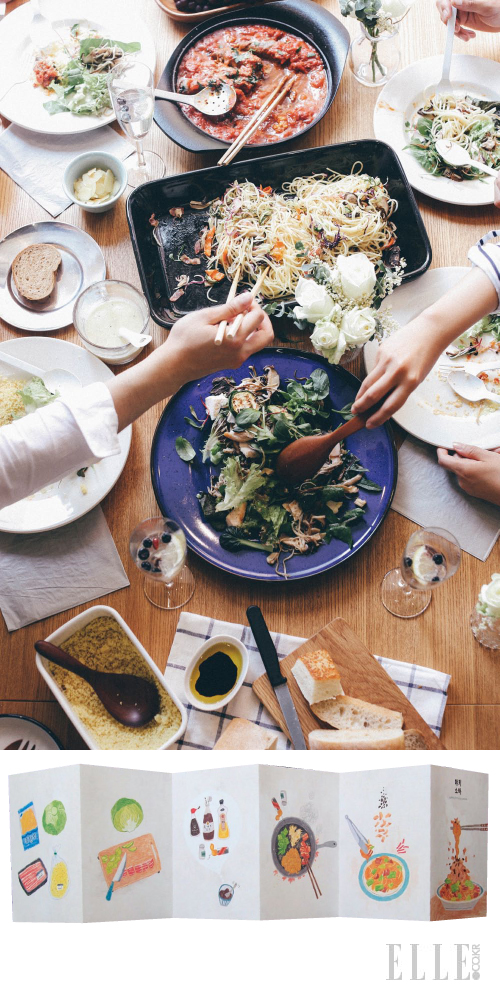 부부이자 파트너로 푸드 디자인 스튜디오인 구루밀 스튜디오를 나란히 운영하고 있는 구루와 밀. 책방 ‘유어 마인드’에서 2주에 1회씩 간이식당을 열고, 비교적 쉬우면서 초대한 지인들에게 생색 내기 좋은 음식을 선정해 레서피는 물론 재료 손질과 조리 도구 다루는 법까지 알려주는 코칭 가이드북 <생색 요리> 발간을 포함해 다양한 음식 프로젝트를 활발하게 진행 중인 이들의 행보는 구루밀 스튜디오의 일이 단순히 클라이언트의 요리 레서피를 짜는 것에 그치지 않음을 보여준다. 남이 만들어준 음식만 먹다가 내가 직접 만든 음식을 먹는 과정에서 느끼는 기쁨, 나아가 미각은 물론이거니와 시각과 후각, 청각까지도 활짝 열어주는 행복한 과정을 보다 많은 사람들에게 알려주고 싶다는 게 두 사람이 지향하는 바다. 음식에 디자인의 개념을 더하고, 일상의 활력소가 되는 도구로서 친숙하게 음식이 활용될 수 있도록 안내하는 커뮤니케이터 역할을 해 나가고 싶은 구루밀 스튜디오가 곧 공개할 최신 프로젝트로는 ‘언리미티드 에디션’에 참여해 <생색 요리 2>를 선보이는 게 있다. 한편으론 영화 <줄리&줄리아>의 요리 교실 버전으로 요리책을 읽어주는 프로젝트도 구상 중.