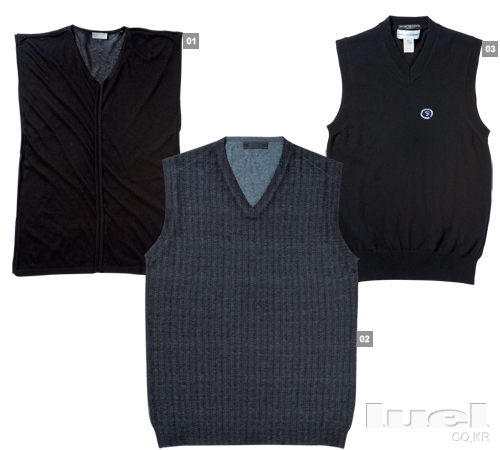 Modern 1 트렌드의 정점을 보여주는 시어한 소재의 베스트. 맨몸에 입는 건 몸짱 연예인의 몫이니 당신은 얇은 티셔츠 위에 레이어링 하도록! 89만원 디올 옴므 2 독특한 프린팅이 눈길을 끈다. 얇고 부드러운 촉감 역시 돋보인다. 깃이 좁고, 단추가 숨어있는 미니멀한 디자인의 셔츠 위에 입으면 멋질 듯. 가격미정 프라다 3 심플한 블랙 스웨터 베스트는 하얀 크루넥 티셔츠 위에 입어도 좋고, 귀여운 체크 셔츠와 매치해도 예쁘다. 38만원 꼼 데 가르송 셔츠 by 10 꼬르소 꼬모 |