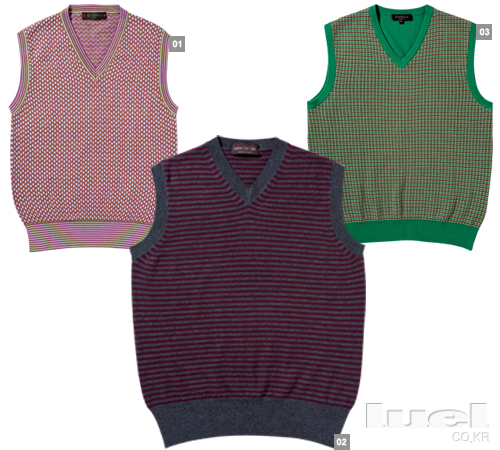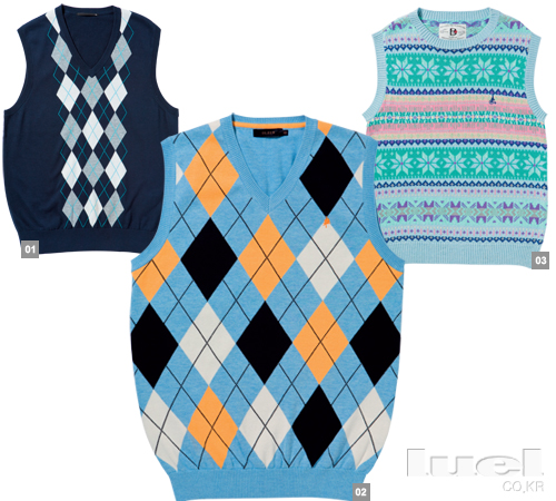Preppy 1 귀엽고 착한 이미지의 아가일 패턴이 가미되었다. 어려 보이고 싶을 때 옥스퍼드 셔츠 위에 이 베스트를 입고, 깔끔한 투 버튼 블레이저를 걸친다. 2만9천9백원 유니클로 2 보색 대비를 이루는 아가일 패턴이 전면에 포진했다. 블랙 셔츠와 레이어링할 생각은 꿈에도 하지 마시길. 밝은 회색이나 아이보리 톤의 셔츠와 입어야 보기 좋다. 16만9천원 올젠 3 페어아일 패턴은 전원적인 분위기를 풍긴다. 촌스럽게 보이지 않으려면 몸에 딱 맞는 네이비 블레이저를 걸쳐야 한다. 15만8천원 빈폴 |