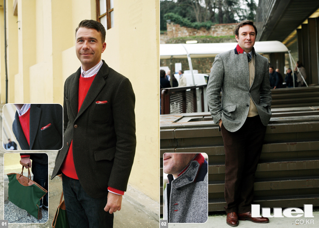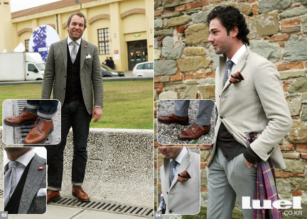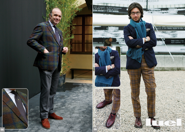 5 “타탄 체크 재킷에 이번 시즌 키 아이템인 그레이 플란넬 팬츠를 입으셨군요. 따뜻한 버건디 컬러 스웨이드 슈즈도 반가운 조합입니다. 다만 유난히 돋보이는 원포인트 타이는 좀 어색하지 않나요?” -샌프란시스코 마켓 대표 한태민
