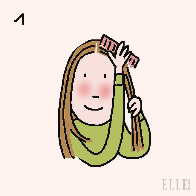 가는 빗으로 머리 앞부분을 정성껏 잘 빗는다.