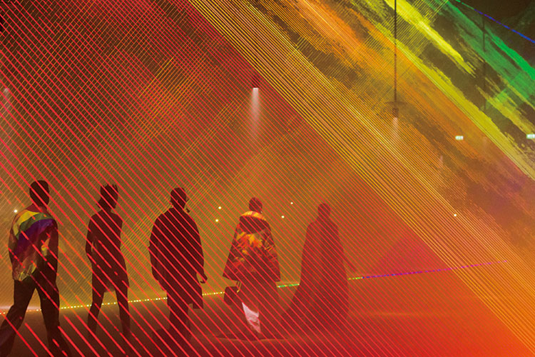 2 조각조각 나뉜 컬러플한 패치워크를 극대화하고 싶다면 컬러 블로킹 토트백과 화려한 이어링을 포인트 액세서리로 활용해 볼 것.