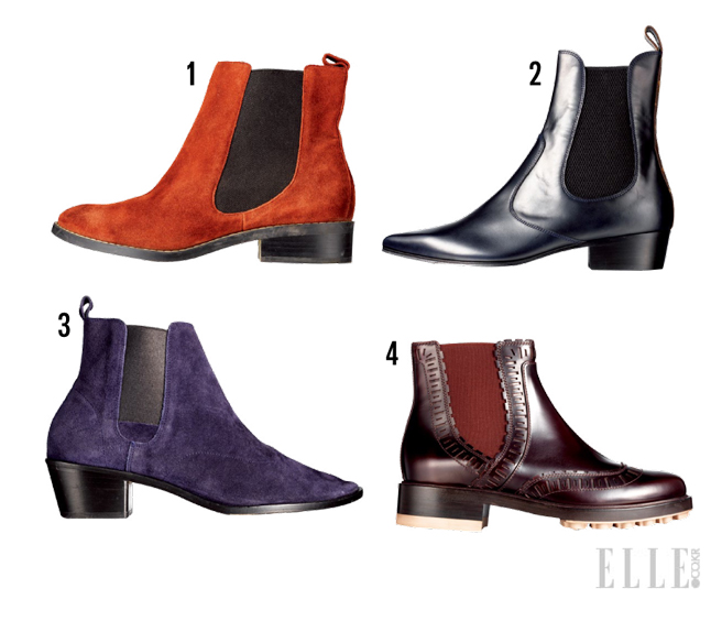 4 투박한 아웃 솔과 펀칭 장식의 첼시 부츠는 매니시 룩에 화룡점정. 1백9만원대, Tod’s.