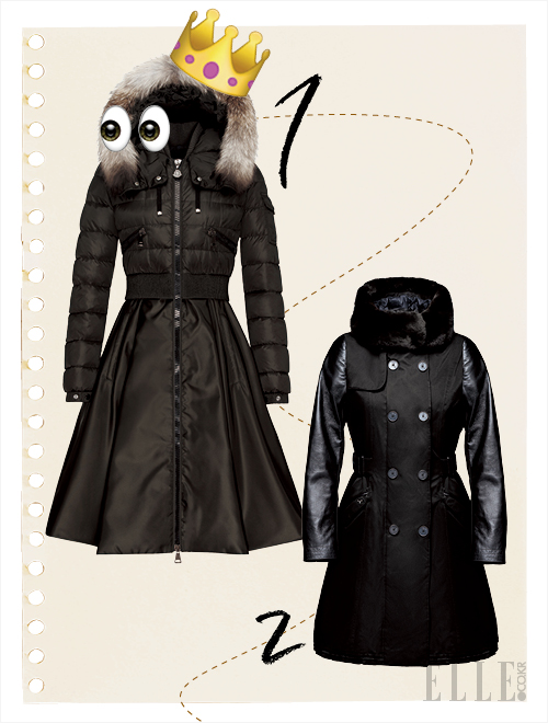 1 트렌디한 보머 재킷과 풍성한 풀 스커트를 결합한 원피스형 다운코트는 3백77만원, Moncler.
