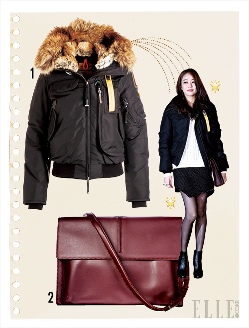 1 풍성한 라쿤 퍼와 가죽 패치로 워크웨어 스타일을 완성했다. 2백52만8천원, Parajumpers.