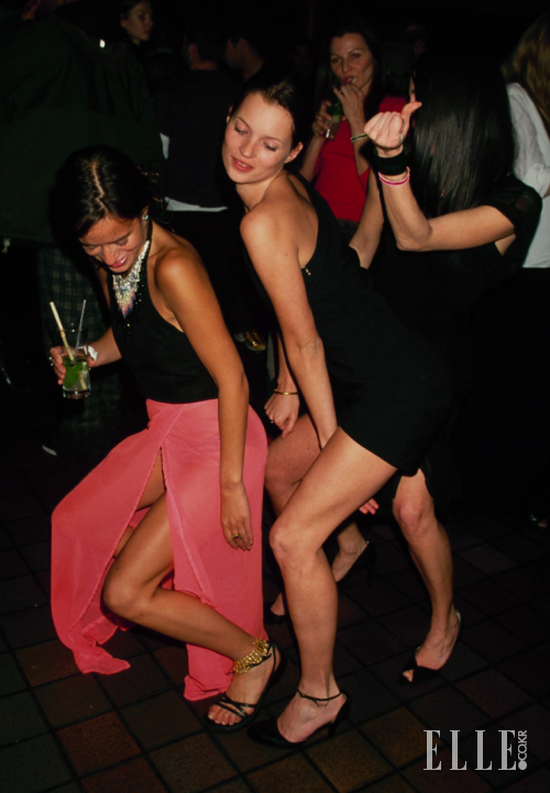 앳된 모습의 스물한 살 케이트 모스. 그녀를 본격적인 성공가도로 이끈 세계적인 모델 에이전트이자 포토그래퍼인 폴 롤랑의 마흔 살 생일 파티가 열린 뉴욕의 빅터스 카페(Victor’s Cafe′)에서 케이트는 제이드 재거(왼쪽)와 함께 섹시 댄스를 추며 파티를 즐기고 있다. 이날의 생일 주인공인 폴은 마리노 소렌티의 소개로 그녀를 처음 본 순간을 이렇게 회상했다. “그녀에겐 진짜 순수함이 있었어요. 진짜 살아 있는 삶을 살고 있는 사람의 반짝이는 눈빛을 지닌 소녀라고 할까요?”