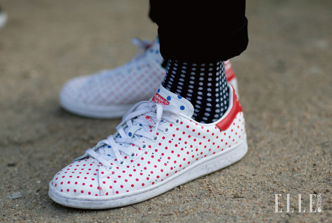 도트 패턴의 스니커즈와 삭스가 만나면? 리드미컬한 도트의 향연으로 유니크함이 배가된다.