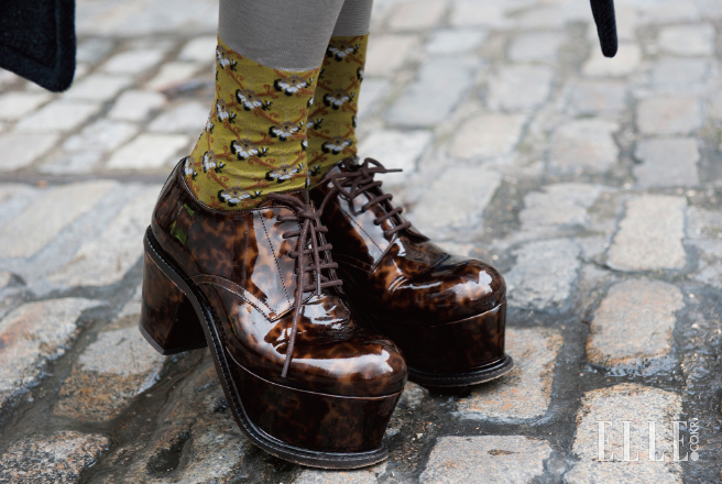청키한 플랫폼 슈즈와 빈티지한 패턴이 가미된 삭스.