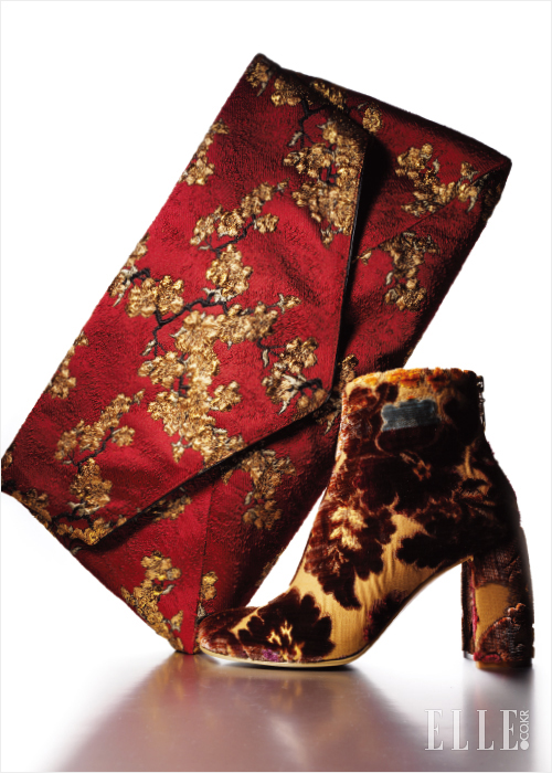 동양적인 디테일의 클러치백은 1백25만원, Dries Van Noten. 앵클부츠는 2백9만원, Stella McCartney.