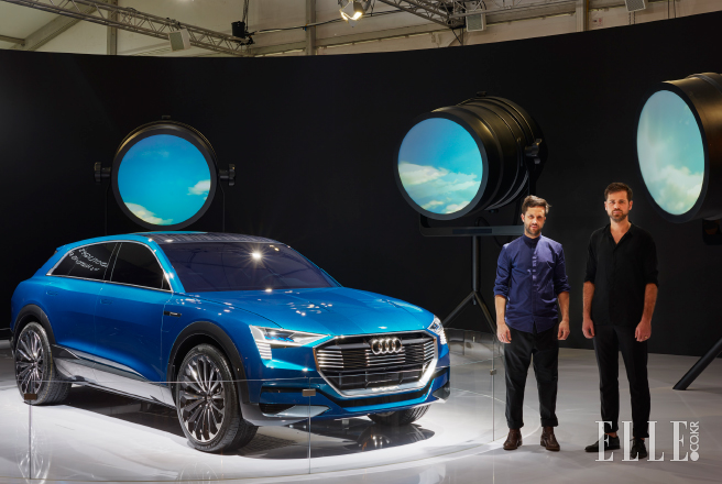 아우디의 대형 전기차 ‘이트론 콰트로’에서 영감받은 대형 ‘스포트라이츠’ 작업을 선보인 듀오 아티스트 ‘휴먼스 신스 1982’.