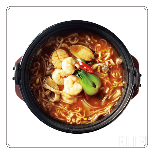 최초의 아이스크림, 최초의 엘리베이터, 최초의 댄스파티…. 고급스런 호텔 문화를 최초로 선보여온 웨스틴 조선호텔에서 출시 10년이 넘도록 야식 메뉴 1위를 지키고 있는 음식은 바로 해물라면이다. 호텔에서 웬 라면이냐고 묻는다면 생경한 도시, 낯선 잠자리에서 출출함에 뒤척여보지 않은 사람일 거다. 국내산 닭 뼈로 우려내 맛에 깊이를 더한 국물과 새우, 관자, 전복 등 오동통한 해물이 허한 속을 얼큰하고도 시원하게 채워준다.