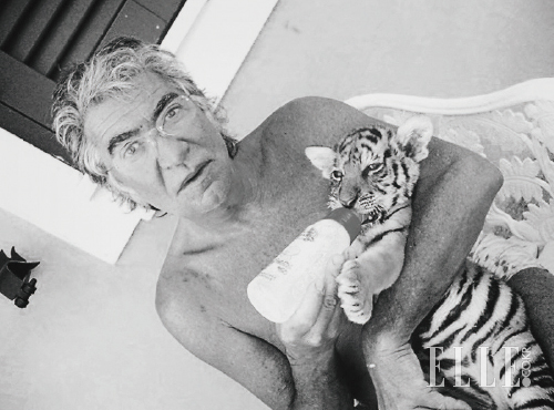 원숭이, 앵무새, 고양이, 말, 이구아나, 강아지 등을 키우는 디자이너 로베르토 카발리. 친구로부터 새끼 호랑이를 입양해 직접 우유를 먹이며 키우기도 했다.