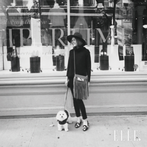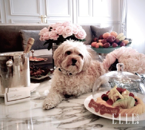 웃고 있는 것 같은 표정이 특징인 올리비아 팔레르모의 반려견 미스터 버틀러. 사교계의 여왕인 주인을 닮아 패션 센스가 남다르다.