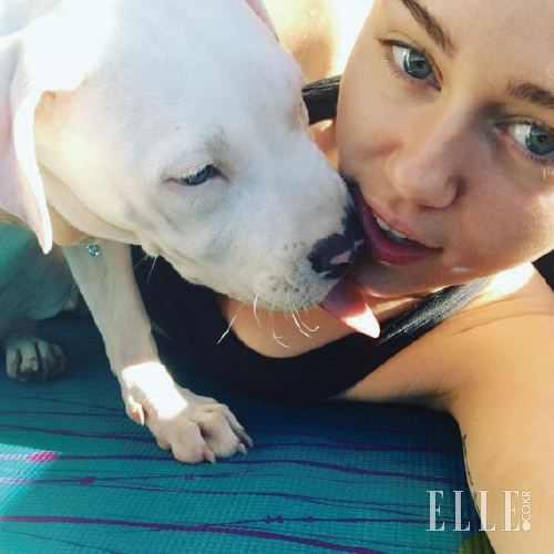 돼지 부바수와 강아지 5마리 그리고 고양이까지 키우는 마일리 사이러스. 요즘 그녀의 사랑을 독차지하고 있는 건 흰 강아지 밀크. 투어에도 동행하고 있다.