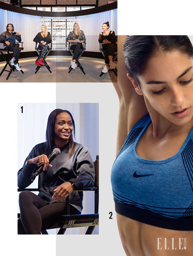 여하튼 흥분 반, 긴장 반의 심경으로 향한 곳은 맨해튼에 있는 소호의 부티크 호텔에서 불과 열 발자국도 떨어지지 않은 45 그랜드(45 Grand). 신원 확인 후 입장이 허락되는 이 공간은 예약을 거친 셀러브리티와 미디어만이 한정적으로 출입할 수 있는 나이키의 특별한 트레이닝 공간. 나이키 우먼스의 전 제품이 최신 업데이트되는 쇼룸 겸 전문가들의 코칭을 받을 수 있는 스튜디오로도 종종 활용된다. 반투명 패널이 물고기 비늘처럼 여러 겹으로 포개져 채플을 형성하는 공간미가 탁월하게 느껴진다(2층은 나이키+ 러닝과 나이키+ 트레이닝 클럽의 디지털 서비스를 받을 수 있는 라운지). 미래적인 디자인을 감상하느라, 이곳을 찾은 목적을 상실하기 직전, 나이키 우먼스 트레이닝 글로벌 디자인 파트 부사장인 줄리 이가라시(Julie Igarashi)가 마이크를 들었다.