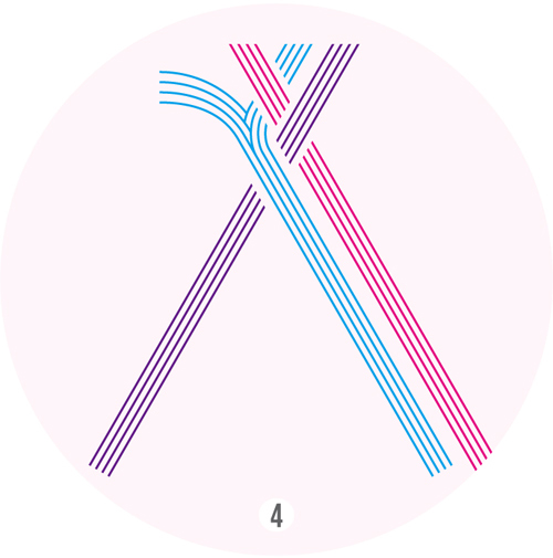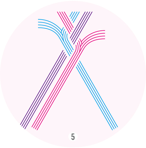 2 왼쪽 갈래를 가운데 갈래 위로 꼬아 중앙으로 배치한다.